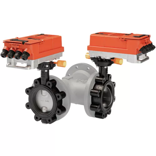• 3-utas pillangószelep (2x pillangószelep 2x T-idom nélküli hajtóművel)