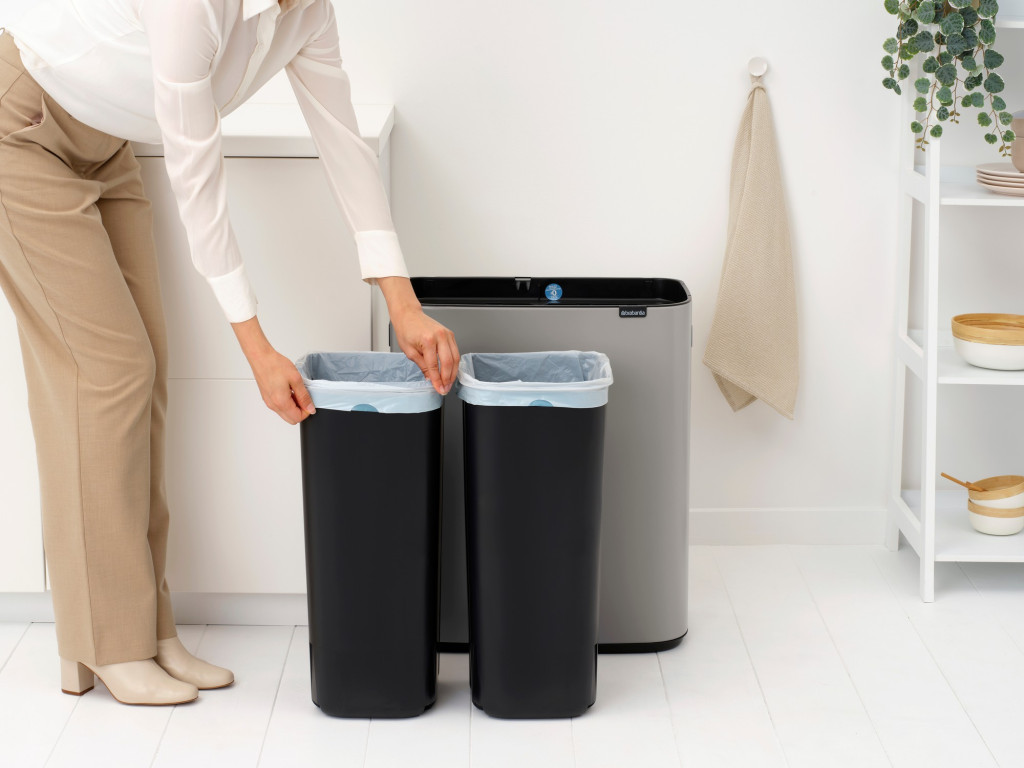 Elegáns hamvasszürke (Soft Grey) kivitelű, nagy kapacitású szelektív hulladékgyűjtő a Brabantia-tól. A két 30 literes tartállyal és innovatív Soft-Touch nyitórendszerrel ellátott Bo Touch Bin ötvözi a környezettudatos praktikumot és a nyugodt, kifinomult designt.