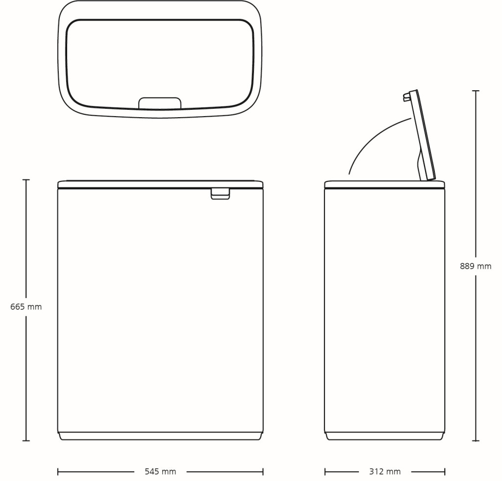 • Ergonómia: A 815-889 mm körüli (nyitott fedéllel) magasság kényelmes használatot biztosít, nem kell mélyre hajolni a szemét kidobásához.