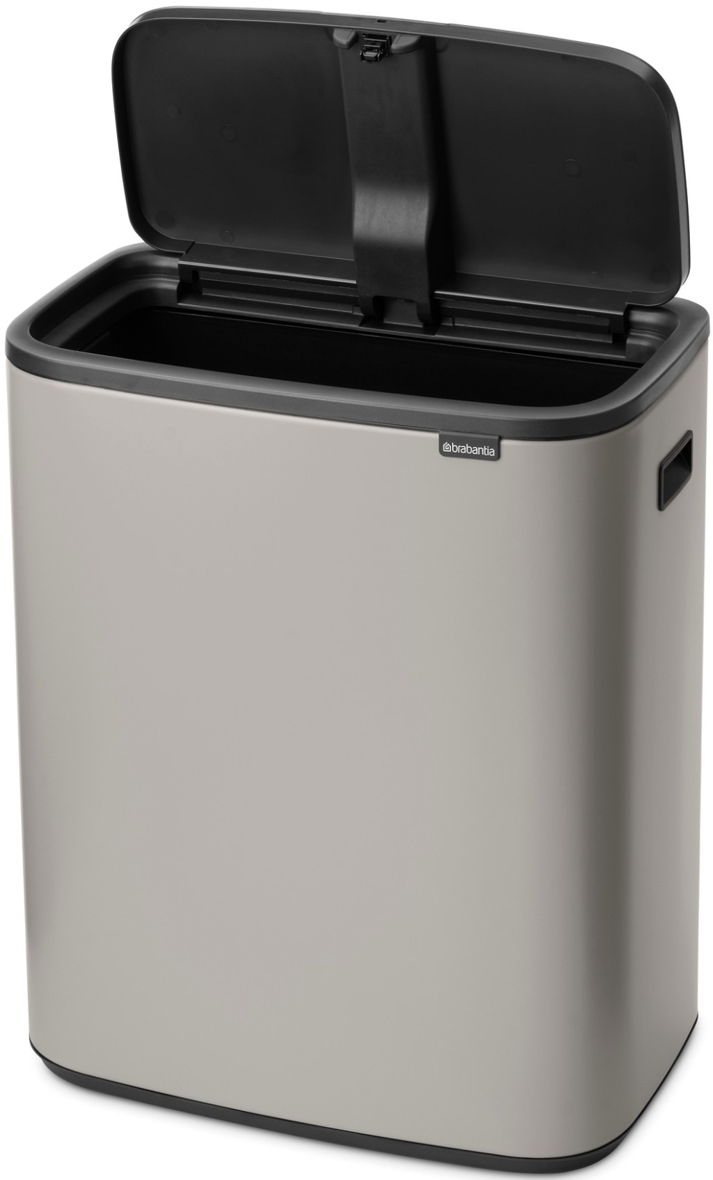 Brabantia Bo Touch Bin nyomófedeles hulladékgyűjtő XXL, padlón álló, műanyag tartály, 60L - M méret, acél, hamvasszürke, BR255106