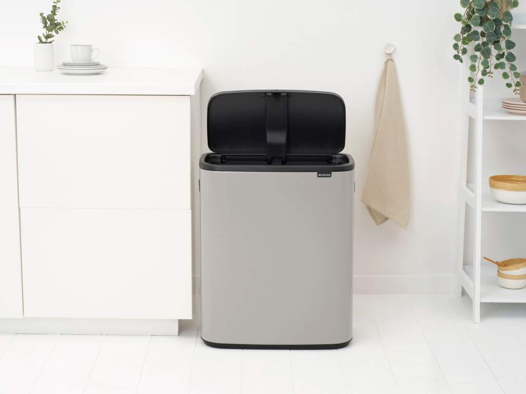 Az elegáns hamvasszürke (Soft Grey) Brabantia Bo Touch Bin XXL hulladékgyűjtő a nyugalom és a stílus szigete a modern otthonokban. Ez a 60 literes óriás a puha nyitási rendszerrel és a diszkrét színvilággal bizonyítja, hogy a nagy kapacitás is lehet kecses és környezetbarát.