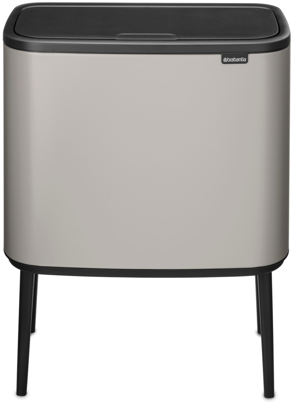 Brabantia Bo Touch Bin nyomófedeles hulladékgyűjtő, magasított, lábakon álló, műanyag tartály, 36L - R méret, acél, magabiztos szürke - 233562