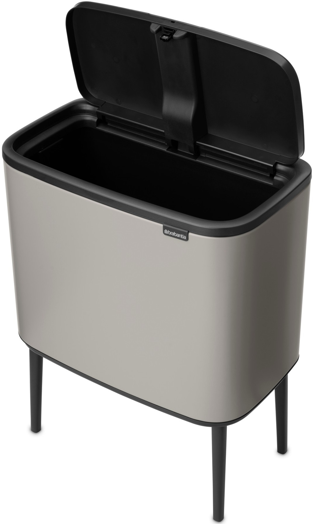 Brabantia Bo Touch Bin nyomófedeles hulladékgyűjtő, magasított, lábakon álló, műanyag tartály, 36L - R méret, acél,