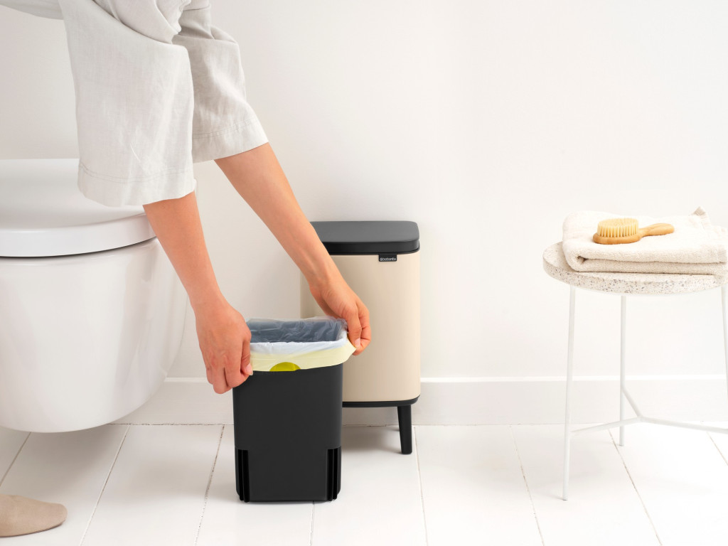 A Brabantia Bo Waste Bin Hi 4 literes, világos bézs (Soft Beige) hulladékgyűjtője nem csupán egy szemetes, hanem egy kifinomult bútordarab. Ez a magasított, kecses lábakon álló modell tökéletes megoldás a fürdőszobába, az irodába vagy a konyha kisebb sarkaiba. A lágy bézs tónus természetes harmóniát teremt, miközben a prémium funkciók a legmagasabb szintű kényelmet biztosítják.