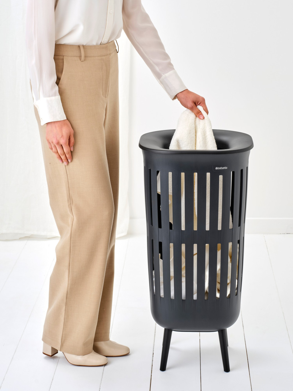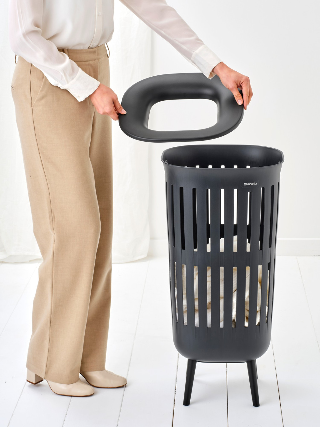 A Brabantia Collect-It Hi 55 literes szennyestartó kosár a bizonyíték arra, hogy a praktikum és a lakberendezési esztétika tökéletes harmóniában élhet egymás mellett. Ez a modell a népszerű Collect-It széria „csúcsváltozata”: a magasított lábaknak köszönhetően nemcsak vizuálisan emeli ki a teret, de ergonómiai szempontból is új szintet képvisel, megkímélve Önt a felesleges hajolgatástól.