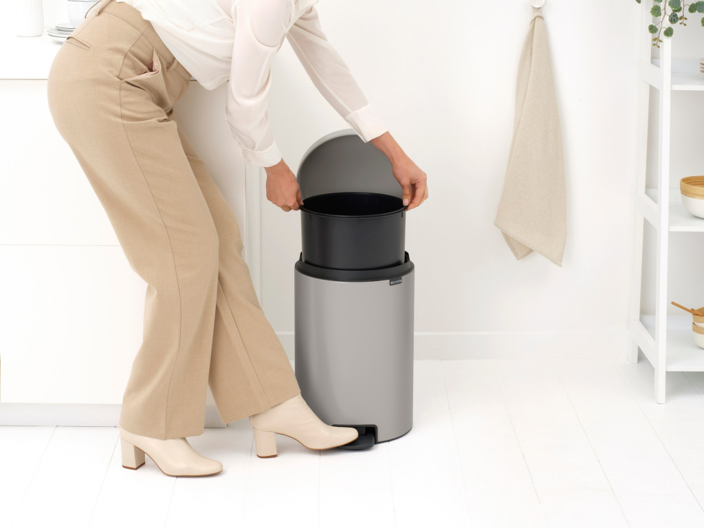 A Brabantia NewIcon hulladékgyűjtő elegáns és időtálló megoldás konyhájába. Ez a 20 literes modell az arany középút: elég nagy a mindennapi családi használathoz, mégis elég kompakt ahhoz, hogy ne uralja a teret. A hamvasszürke (Soft Grey) színválasztás a nyugalom és a tisztaság érzetét hozza el otthonába: ez a semleges, lágy árnyalat harmonikusan simul bele mind a modern, mind a klasszikus enteriőrökbe.