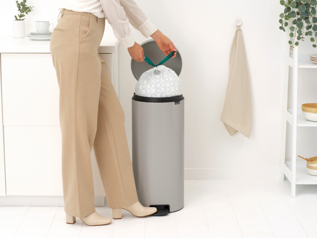 Kifinomult megjelenésű, 30 literes Brabantia NewIcon pedálos szemetes kivehető műanyag kosárral és innovatív Soft-Close rendszerrel. A hamvasszürke (Soft Grey) kivitel és a környezettudatos kialakítás tökéletes választássá teszi mindennapi használatra. Prémium minőségű belső műanyag tartállyal és szagmentesen záródó fedéllel rendelkezik.