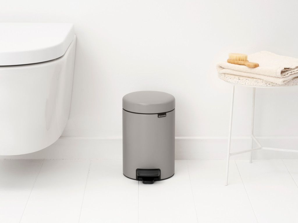 Brabantia NewIcon pedálos hulladékgyűjtő szagmentesen záródó Soft-Close fedél, műanyag tartály, 3L - V méret, acél, hamvasszürke – A csendes elegancia lágy szürkében