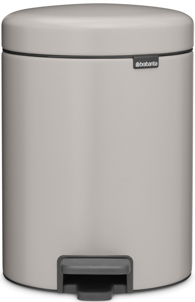 Brabantia NewIcon pedálos hulladékgyűjtő szagmentesen záródó Soft-Close fedél, műanyag tartály, 5L - W méret, acél, hamvasszürke