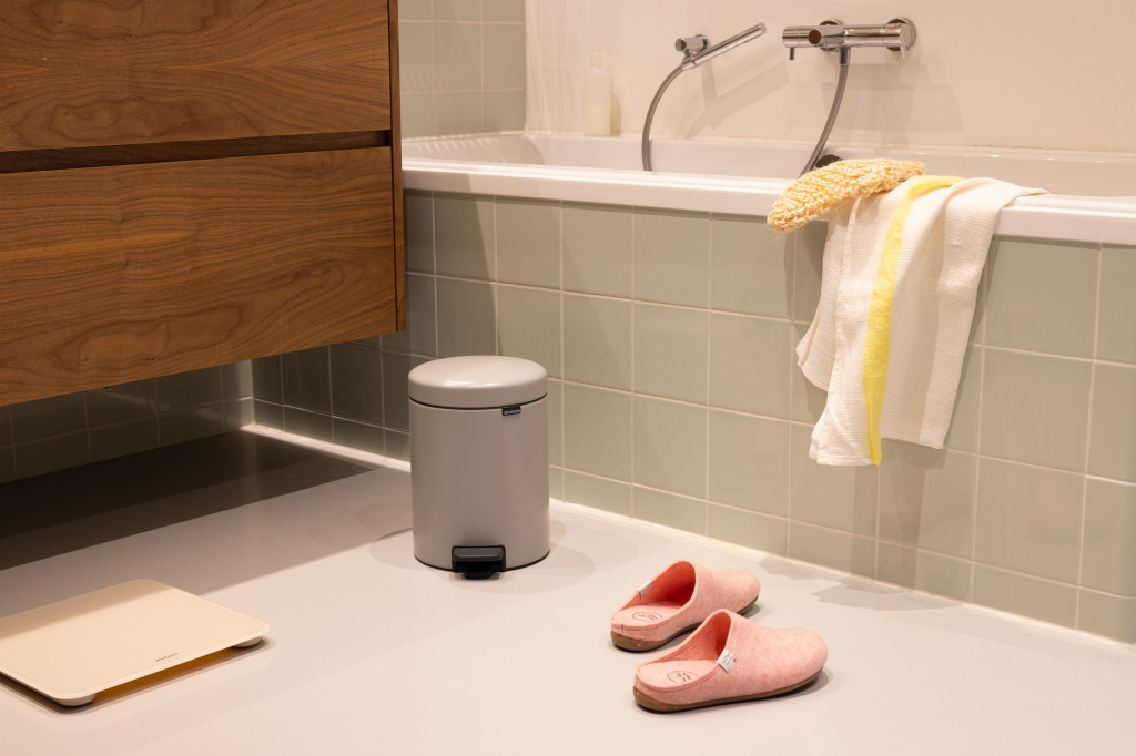 A Brabantia elkötelezett a környezetvédelem mellett, ezért ez a hulladékgyűjtő jelentős mértékben (kb. 33-40%) újrahasznosított anyagból készül, és használat után 96%-ban újrahasznosítható. A termék Cradle to Cradle Bronz szintű tanúsítvánnyal rendelkezik, ami igazolja a fenntartható gyártási folyamatokat. A prémium minőségű szénacélból készült test a Hamvasszürke bevonattal nemcsak stílusos, de rendkívül tartós is. A csúszásmentes felülettel ellátott talprészek biztosítják, hogy a szemetes stabilan álljon a helyén, még a fürdőszoba nedves kövén is, miközben megóvja a padlót a karcolásoktól.
