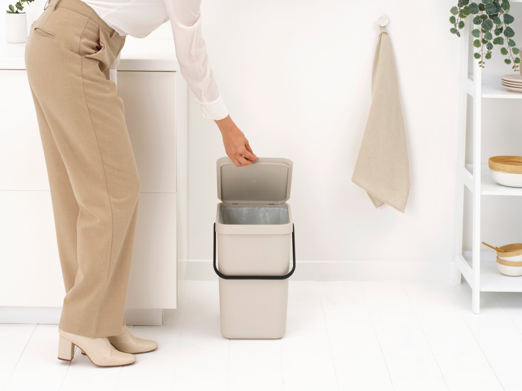 Brabantia Sort & Go konyhai szemetes felnyitható fedéllel, 25L – világos bézs