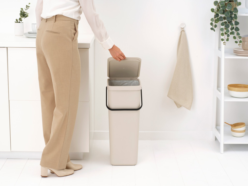 Brabantia Sort & Go konyhai szemetes felnyitható fedéllel, 40L – világos bézs