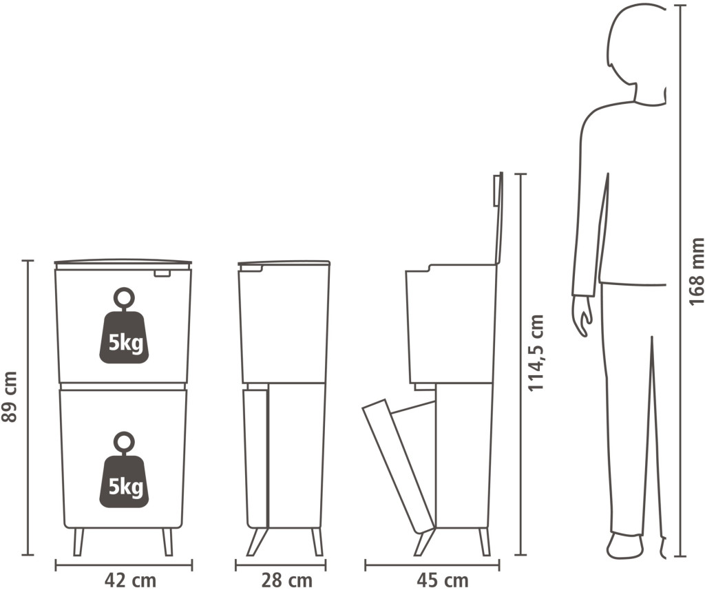 Függőleges toronykialakítás a maximális helykihasználásért A két különálló rekesz (kettő 10 literes és egy 25 literes) egymás feletti elhelyezése lehetővé teszi a különböző hulladéktípusok – például papír és műanyag – elkülönítését anélkül, hogy két külön kukát kellene kerülgetnie. A szögletes, falhoz simuló forma és a kompakt méret ideálissá teszi a SortUp-ot a modern, városi otthonokba, ahol minden négyzetcentiméter számít.