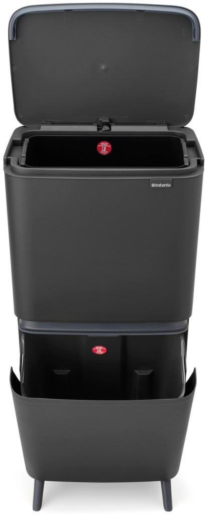 A Brabantia SortUp Recycle Bin Hi nem csupán egy szemetes, hanem egy intelligens hulladékkezelő rendszer, amely függőlegesen terjeszkedik, így minimális alapterületet foglal el. A magasított lábaknak köszönhetően nem kell mélyre hajolnia, a letisztult sötétszürke szín pedig ipari eleganciát és professzionális harmóniát visz az enteriőrbe.