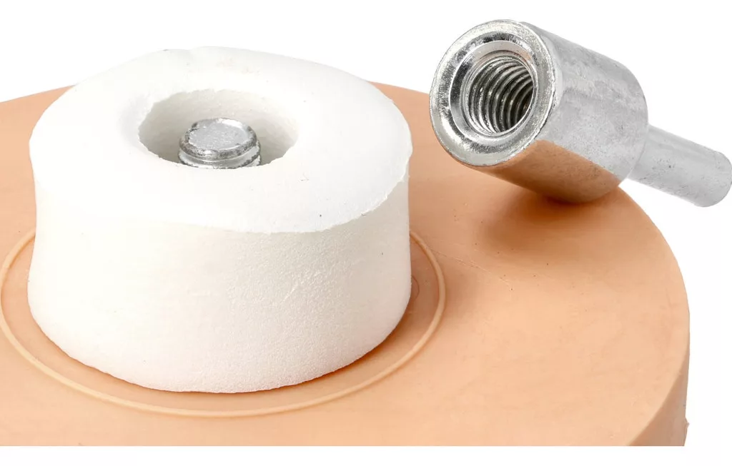 6mm átmérőjű rögzítőcsappal van felszerelve, amely lehetővé teszi a tárcsa használatát bármilyen fúróval vagy csavarozó géppel.