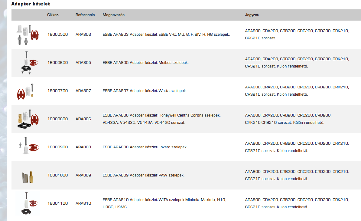 3. ESBE termékek (szelepek, motorok, vezérlők, kiegészítők)