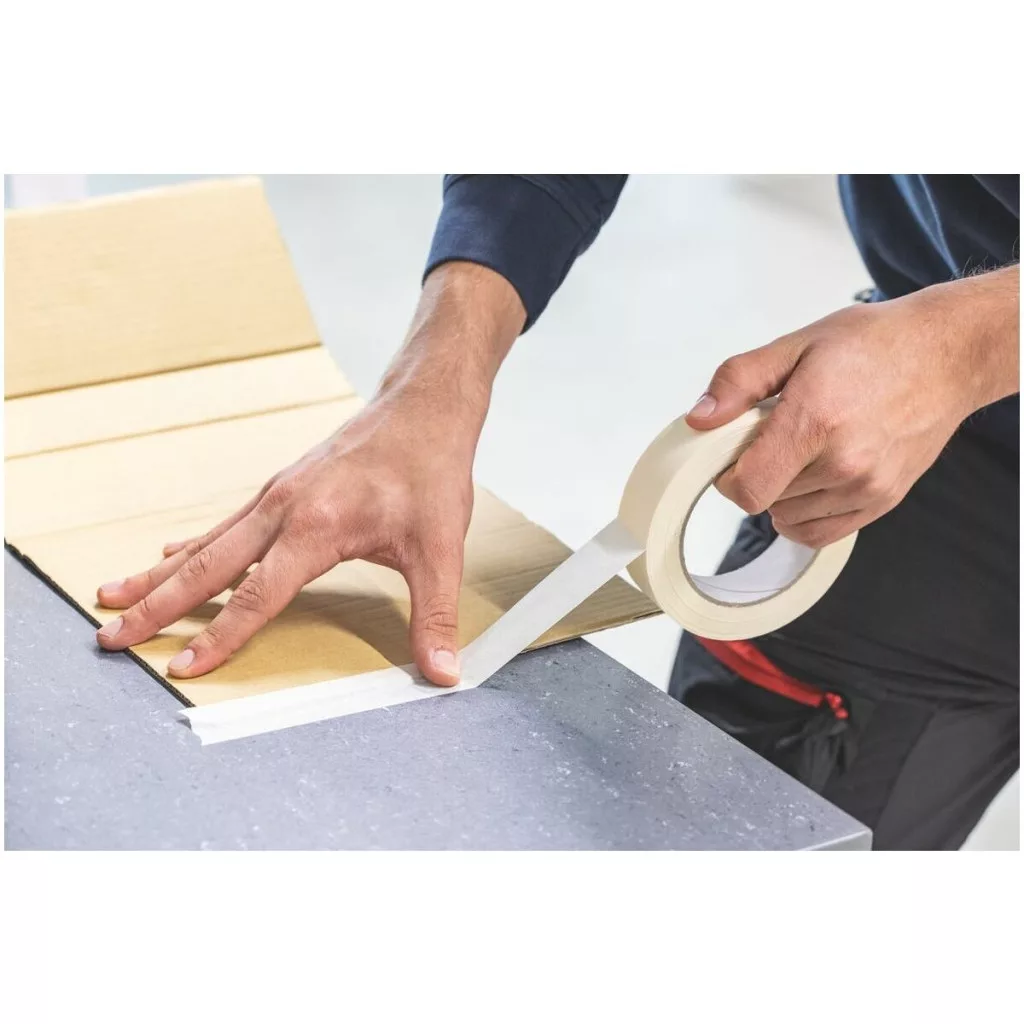 Enyhén kreppelt szalag jó ragasztóerővel, rövid idejű fedési munkához sima felületeken, beltérben. Hőálló maximum 60°C-ig.