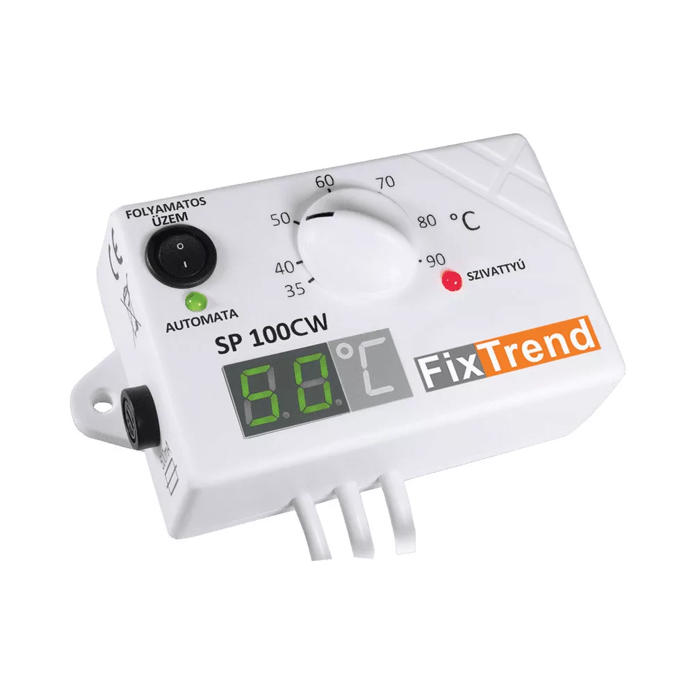 FixTrend SP100CW termosztát, hőfok kijelzővel, HMV cirkulációs szivattyúhoz