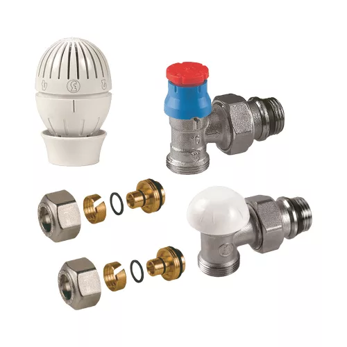 GIACOMINI R470A term.radiátorszelep szett, sarok, 16x2mm műa.csőhöz, 2csatl, 1/2"K