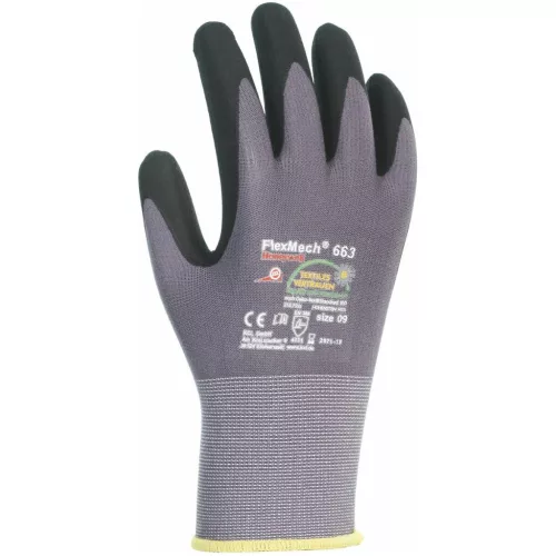 FlexMech® 663. A kesztyű nagyon kopásálló és ergonomikusan jól illeszkedik. Nagyon finom tapintásérzet, jól szellőzik. Szilikonmentes és mosható.