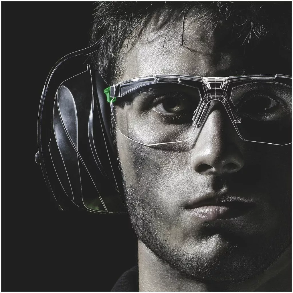 Innovatív védőszemüveg Floating Lens designnal az optimális illeszkedés érdekében szorítás nélkül. Ergonomikus, dinamikus design állítható hosszúságú és dőlésű szárakkal.