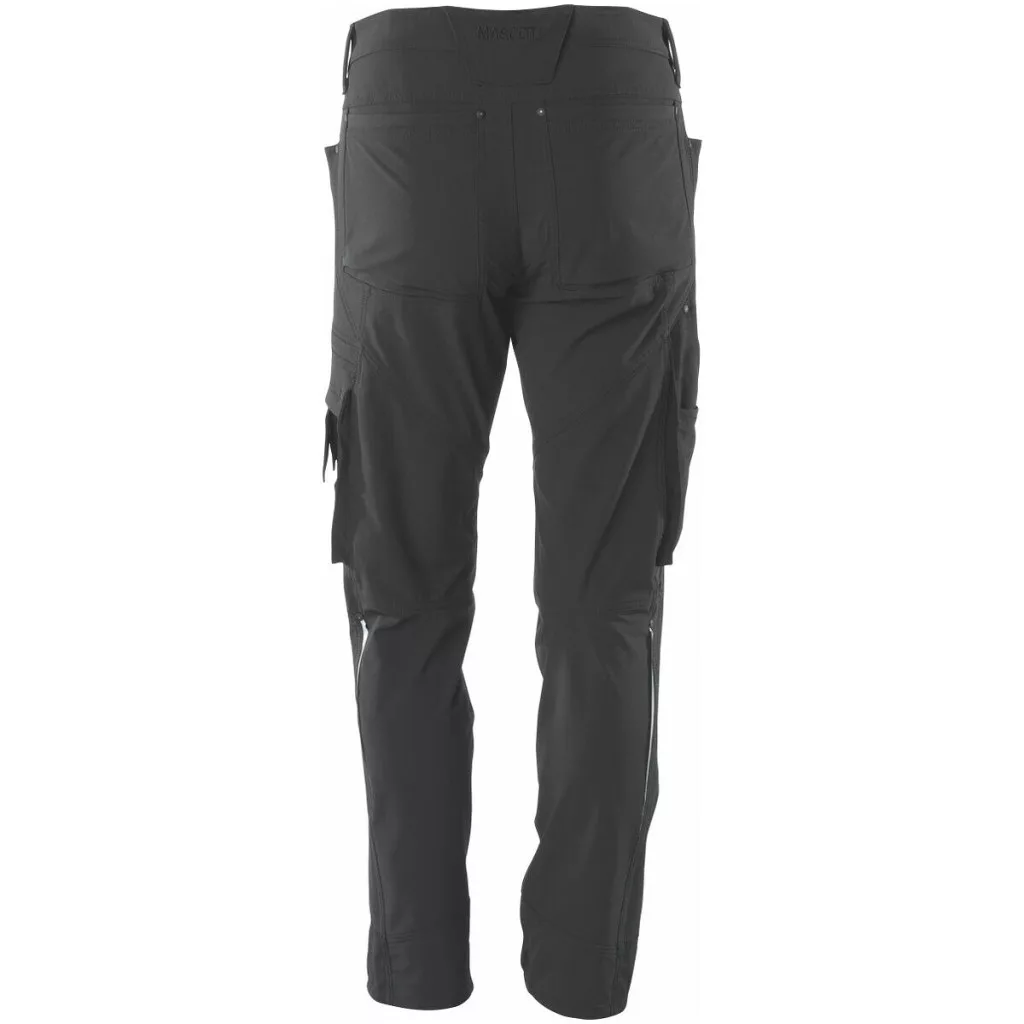 Könnyű, rugalmas munkásnadrág 4 irányú sztreccs anyagból, különösen rugalmas és nagy mozgásszabadságot biztosít. A strapabíró szövet ezen felül vízlepergető. Ergonomikus szabású nadrágszárakkal és alacsony derékrésszel. Fényvisszaverő betétek.