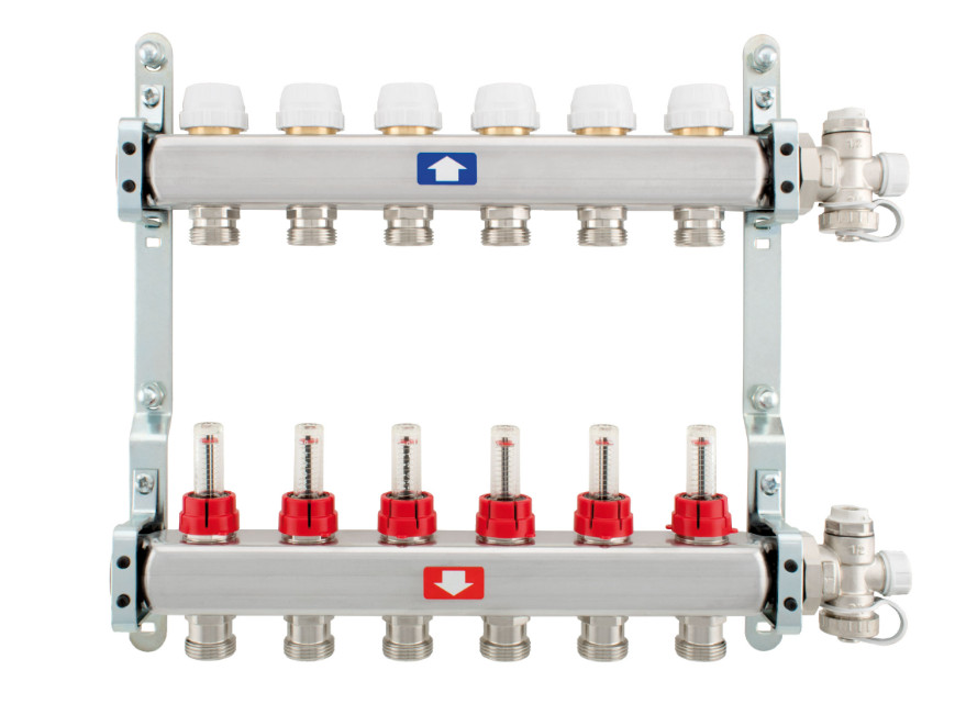 Padlófűtés osztó inox 1" 3 körös (918c) hőfokszabályozós, áramlásmutatóval ITAP