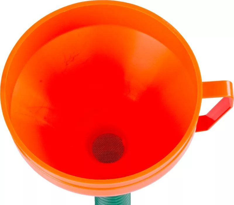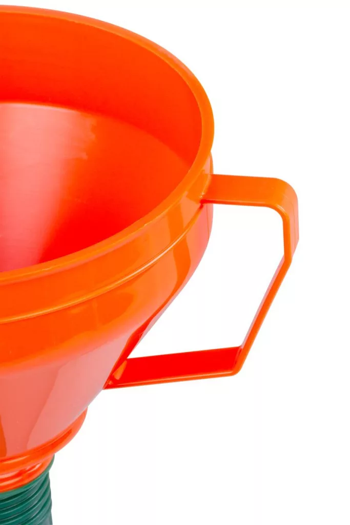 Narancs-zöld színű hosszú tölcsér, flexi hajlítással és oldalsó fogantyúval.