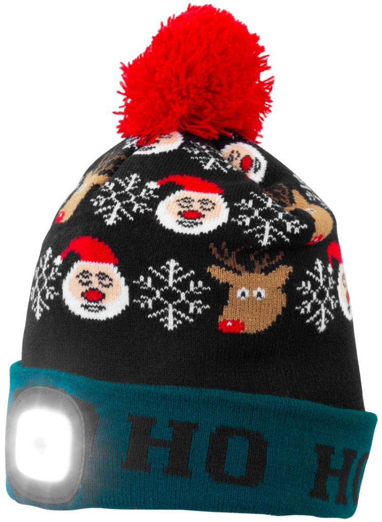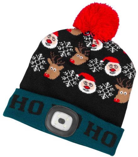 Strend Pro X-mas Ho-Ho téli sapka 4x SMD LED világítással, zöld-fekete színben, L