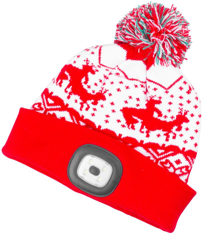 Strend Pro X-mas gyerek téli sapka 4x SMD LED világítással, piros színben, M
