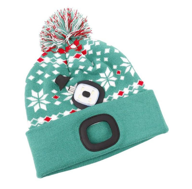 Strend Pro X-mas téli sapka 4x SMD LED világítással, zöld színben, L