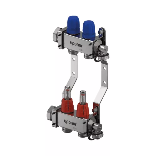 UPONOR Vario C 2 szelepes osztó-gyűjtő, inox, 2 körös, áramlásmérővel, 1"x3/4"Eu