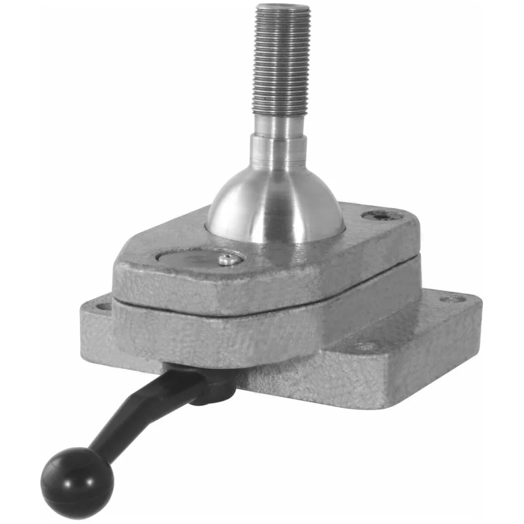 A gömbcsukló segítségével mindig a legkedvezőbb munkahelyzetbe forgatható ill. állítható. Acéltüske M18×1,5 külső menettel és M10 belső menettel saját készítésű szerelő- vagy befogóeszközök rögzítéséhez. A gömbcsukló egy gyorsszorító kar segítségével bármely helyzetben azonnal rögzíthető. Felcsavarozható lemezzel a munkapad munkalapjára történő felcsavarozáshoz. Könnyűfém ötvözet; kalapácslakkozással.