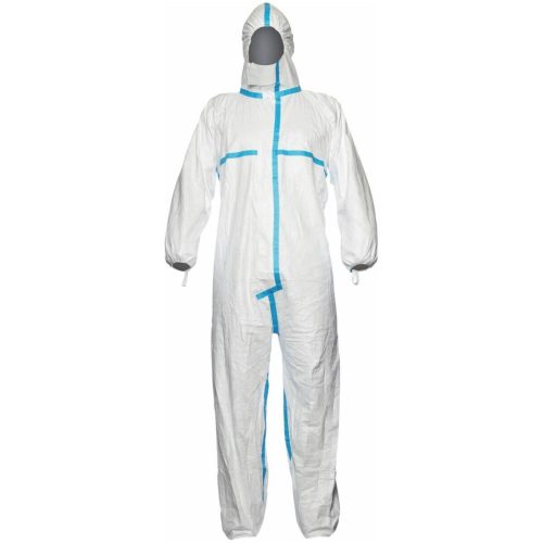 Tyvek® 600 Plus 4/5/6 típus, CHA5a modell. Kombinálja a 4-es teljesítmény típust a Tyvek® ruházat tartósságával, védelmével és kényelmével. Forró fedőragasztású belső varrások a jobb tömítés érdekében. A kapucni alakja ideálisan illeszkedik légzésvédő maszk viseléséhez. Robbanásvédett területekre alkalmas.