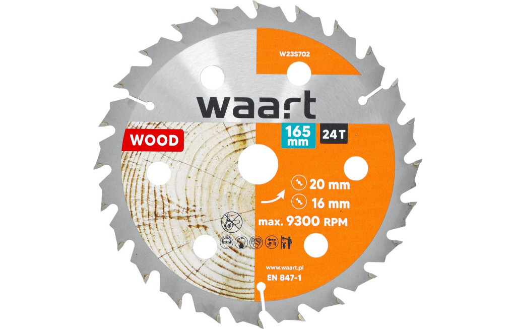 Waart vídiás körfűrészlap fához, 165 X 20 X 30T