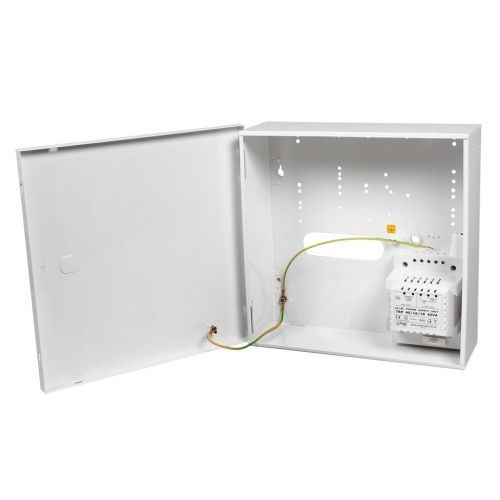 szerelt központdoboz, 254 x 254 x 90 mm, fém, Paradox rendszerekhez, transzformátor, előre fúrt lyukak, tamper, fehér